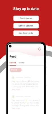 GET UPDATES In Feed and News, you’ll find updates from the administration about what’s going on in the district right now to keep you informed with the latest announcements.