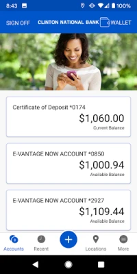 Locations - Find nearby Branches and ATMs using the Android's built-in GPS. Additionally, you can search by zip code or address.