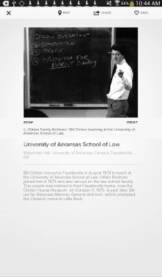 The Clinton Presidential Center's mobile app offers a unique, multimedia-filled perspective of the work – past, present, and future – of the 42nd President of the United States, William Jefferson Clinton. Whether at home, in the classroom, or walking through the Clinton Center's diverse permanent exhibits, users can explore President Clinton's life and administration through high-resolution photos, insightful videos, and an audio tour narrated by President Clinton.