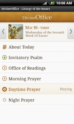 The Divine Office App is designed to make praying more convenient, enjoyable, and simple enough for anyone to use. It automatically downloads the appropriate prayers for each office, every day of the year, including Solemnities, Feasts, and Memorials.