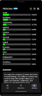 Developed with expertise from clinical psychologists, this app provides unparalleled insights into your personality traits, rooted in the latest research in personality psychology. Whether you are looking to boost your self-esteem, improve your work ethic, or enhance your romantic relationships, this app is your go-to resource for valuable insights based on psychological research.